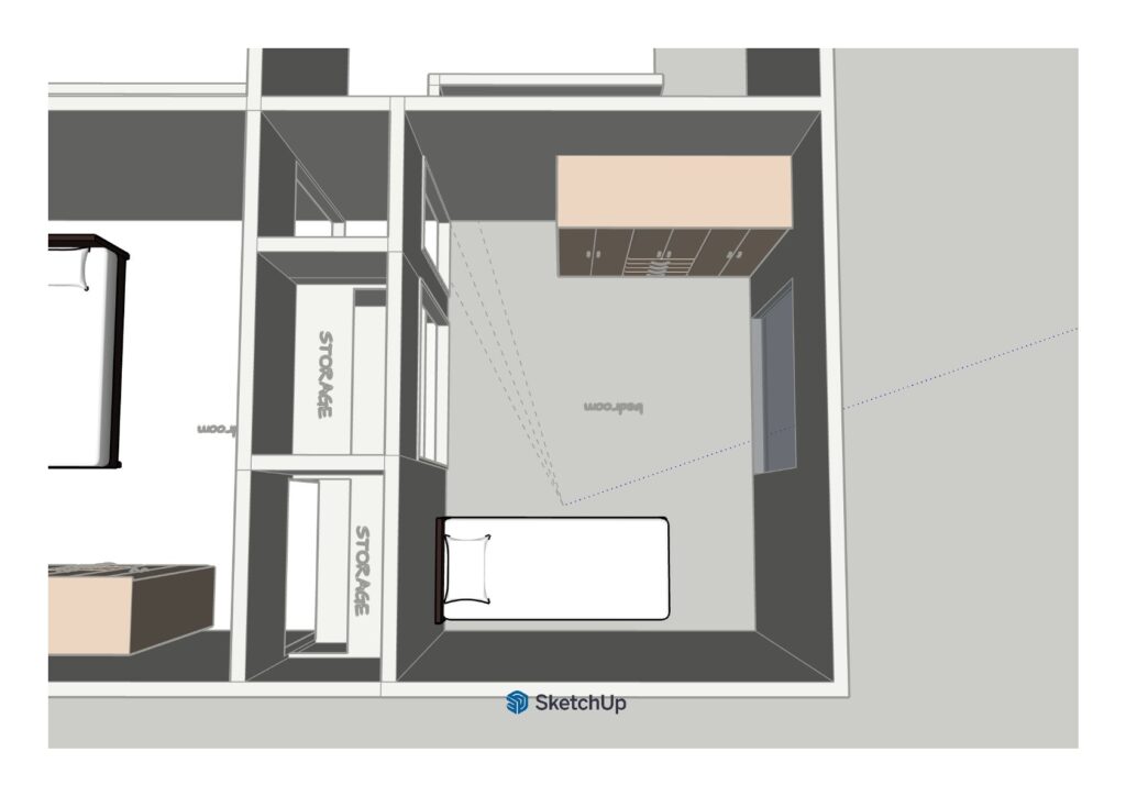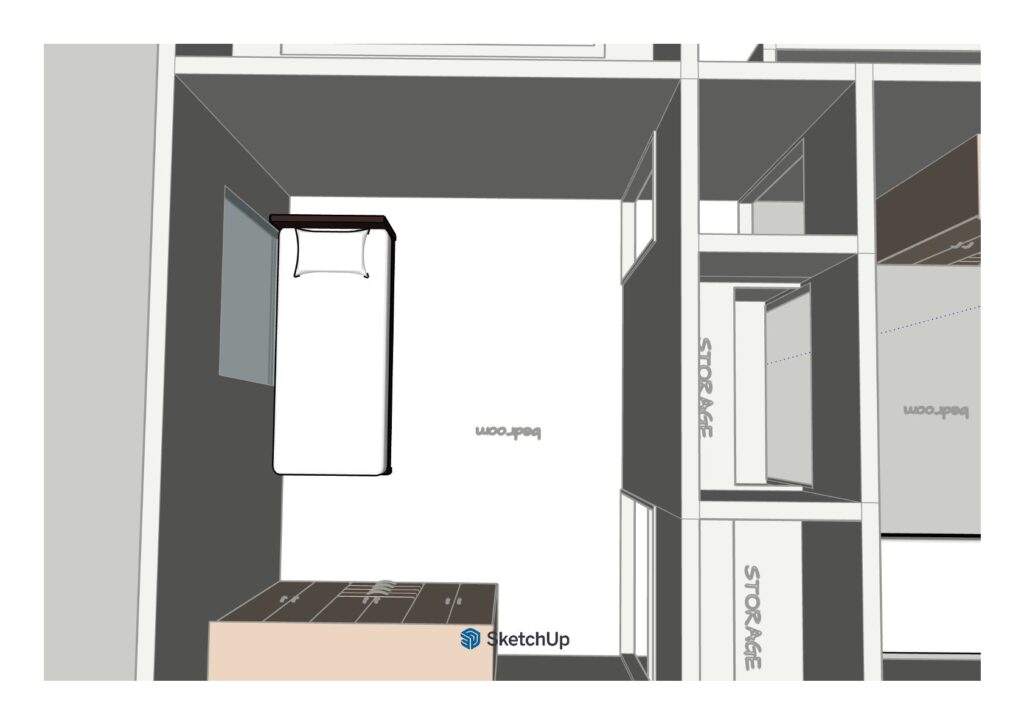 ベッドの配置により使い勝手が違います、出来る限り箱の中から振り落とされない、壁の崩壊から、天井、屋根瓦から守れる、家具の攻撃からも安全にいられるシェルターを考えました。