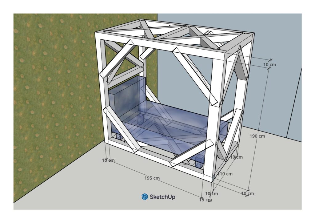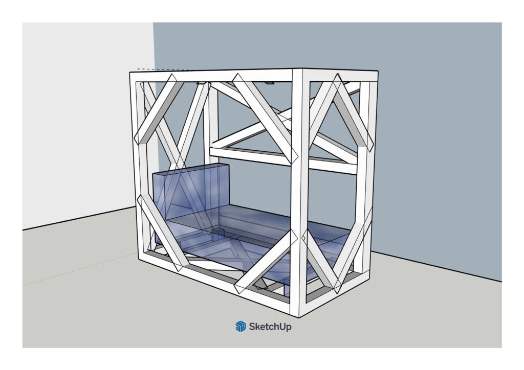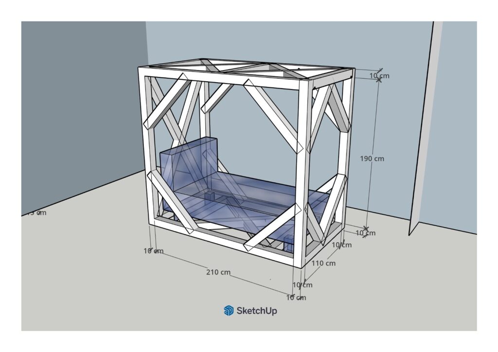 そこでベッド下の床面も含めて箱にしてベッドを中に入れてしまえば寝たまま安全な空間になります、また上階から転がっても箱の中にいられれば軽傷で済むと考えました。