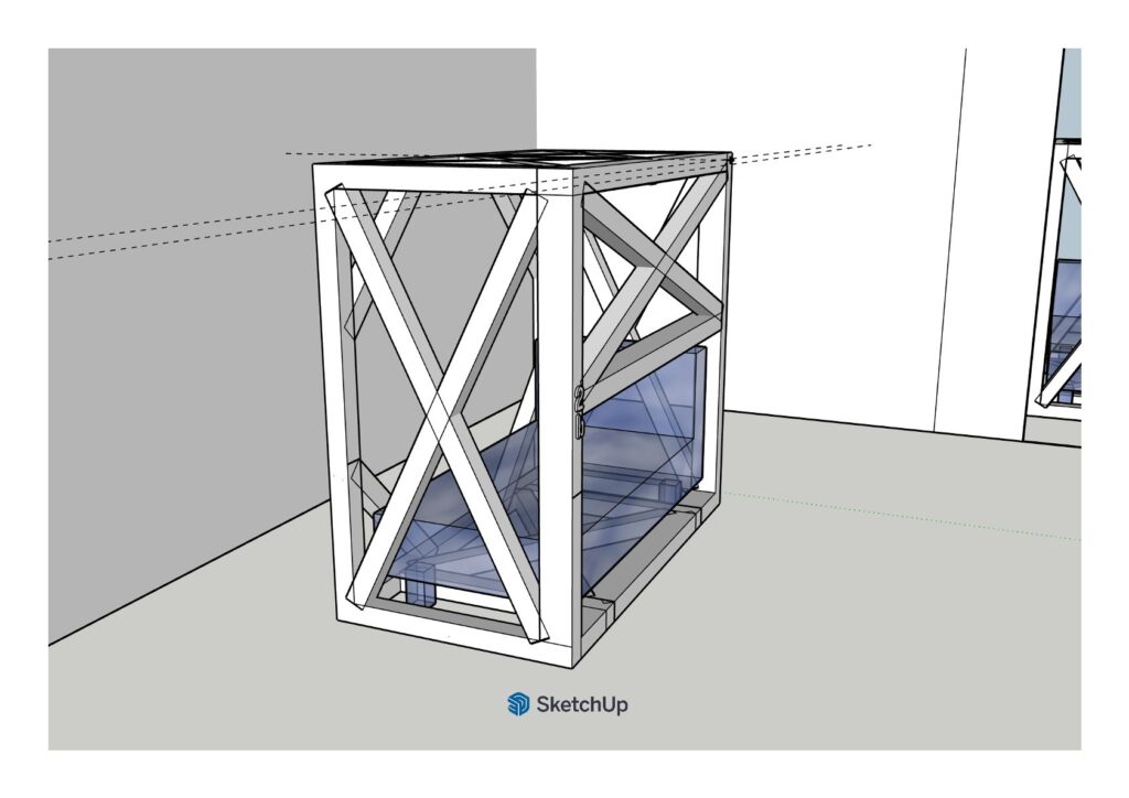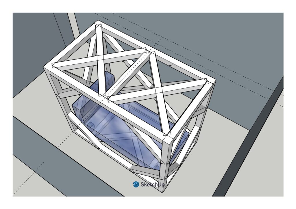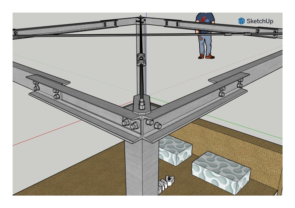 フィリピンでの想定もありコンクリート床にアンカー止めで考えましたが日本の木造の床にアンカーで止めるのは無理です、また柱と梁をユニットで考えて同型の物を使える様に試案しボルトジョイントとしましたが強度に問題がありでした。鉄骨シェルターは雰囲気が堅いので天蓋風にしてはと!